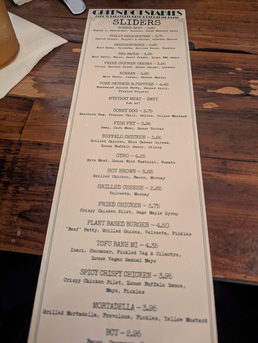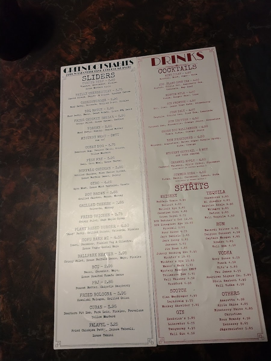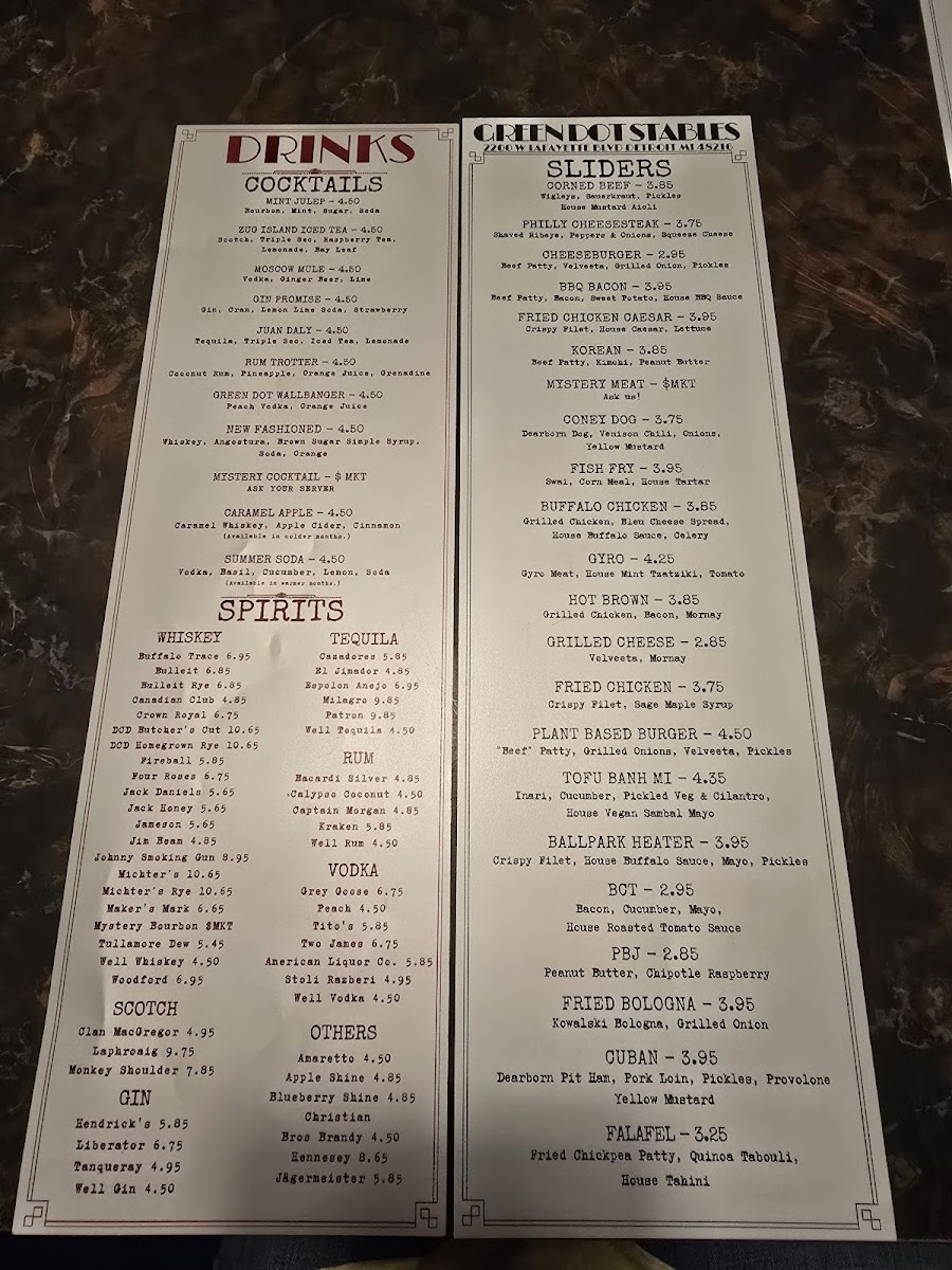 Green Dot Stables in Detroit offers a vibrant New American dining experience centered on inventive sliders and flavorful sides. Their menu shines with diverse slider options like the savory Philly Cheesesteak Ribeye and the bold Korean Beef Patty featuring peanut butter and kimchi, showcasing creative flavor blends with a modern twist. Sides such as Truffle & Herb Fries and the indulgent Venison Chili Cheese Fries complement the small plates perfectly, providing comfort and complexity in every bite.